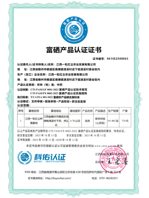 富硒產(chǎn)品認證證書